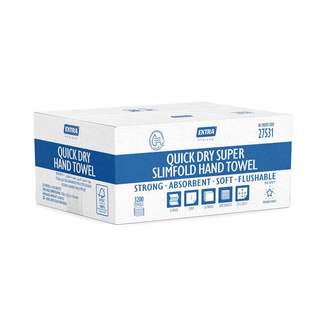 Extra Hygiene Flushable Super Slimfold Hand Towel - 3200 Sheets
